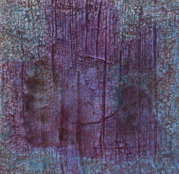 Title: Lilac / Purple / shot with Bronze Original size: 40cm x 40cm Framed size: 49.9cm x 49.9cm Media: Mixed media on canvas © Gem Sheridan (Sold)